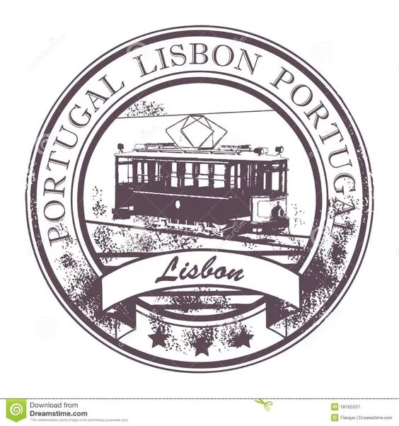 Kesan tampilan gambar logo stempel keren dengan tulisan “Portugal Lisbon” dan latar belakang kereta api mencerminkan identitas dari kota Lisbon, Portugal, yang terkenal dengan sejarahnya yang kaya dan sistem transportasi yang maju. Tulisan “Portugal Lisbon” ditampilkan dengan gaya huruf yang menarik dan mudah terbaca, mencerminkan keunikannya sebagai ibu kota Portugal. Penggunaan huruf kapital pada awal kata memberikan kesan yang kuat dan menonjolkan identitas kota Lisbon.