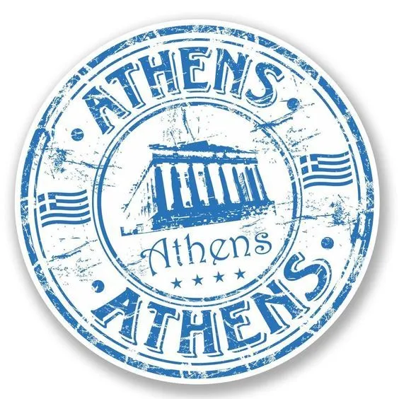 Kesan tampilan gambar logo stempel dengan warna biru, tulisan “Athens,” dan latar belakang bangunan monumen khas Athena adalah mencerminkan keindahan dan sejarah kota Athena sebagai salah satu pusat kebudayaan dan peradaban kuno di dunia. Warna biru memberikan kesan yang tenang, damai, dan serenity. Dalam konteks logo dengan tema “Athens,” warna ini mencerminkan keindahan langit yang cerah di Athena serta memberikan kesan yang menenangkan bagi penonton.