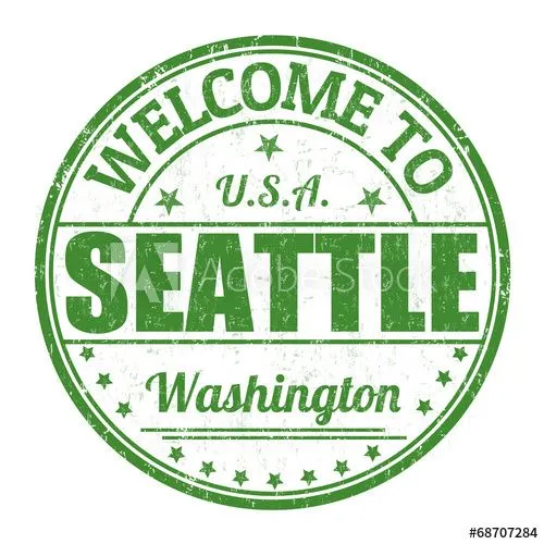 Tulisan “Welcome to Seattle, Washington” ditampilkan dengan gaya huruf yang keren dan menarik, menciptakan kesan yang ramah dan mengundang orang untuk menjelajahi kota ini. Tulisan yang jelas dan mudah terbaca akan memberikan kesan profesional dan informatif.