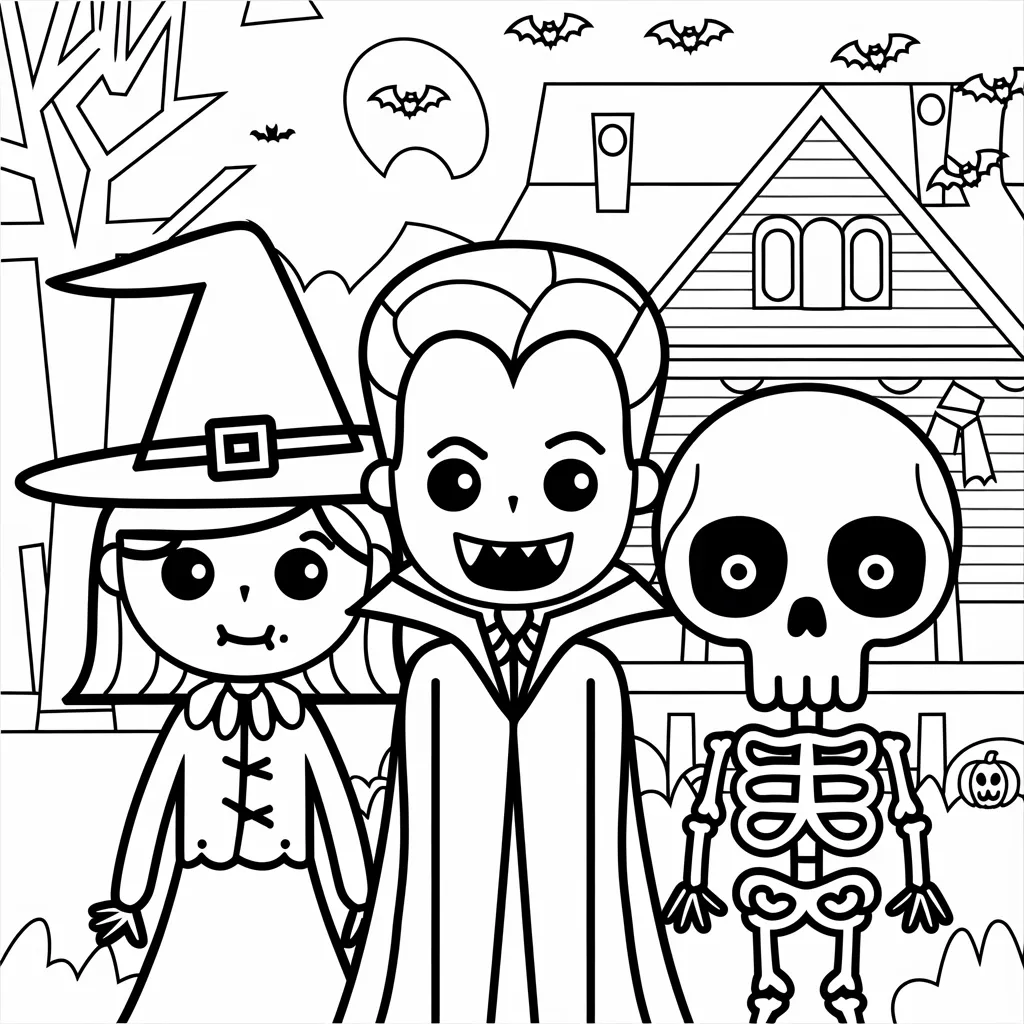 Karakter mengenakan kostum seram atau lucu untuk perayaan Halloween.
