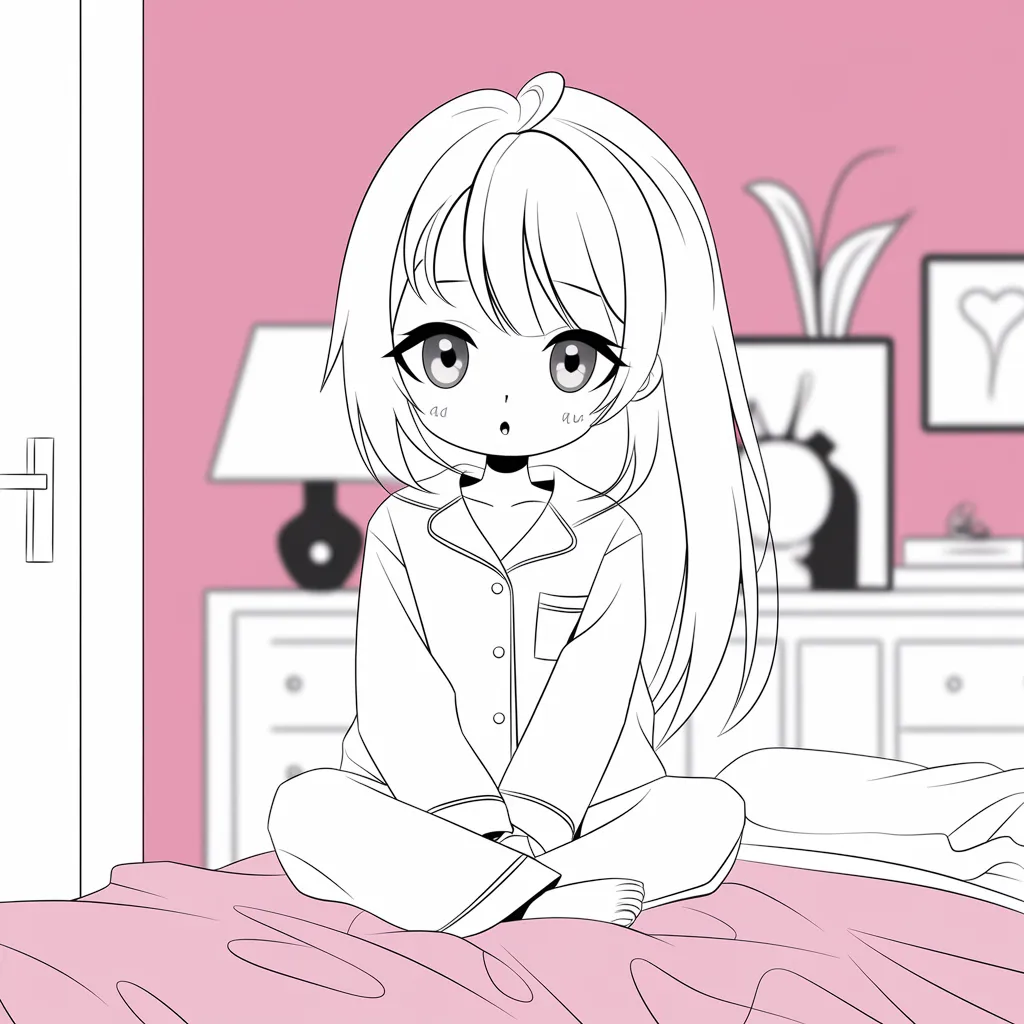 Mengenakan piyama lucu, siap untuk tidur atau pesta piyama.