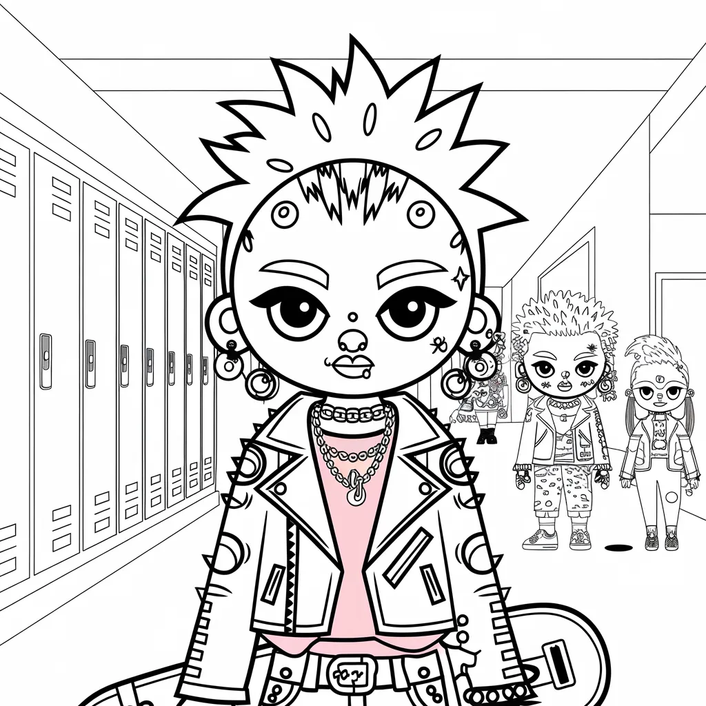 Karakter dengan gaya rambut dan pakaian punk yang keren.