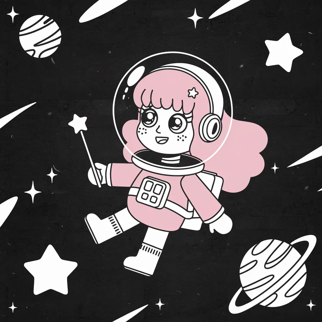 Karakter sebagai astronot atau dengan latar belakang luar angkasa.