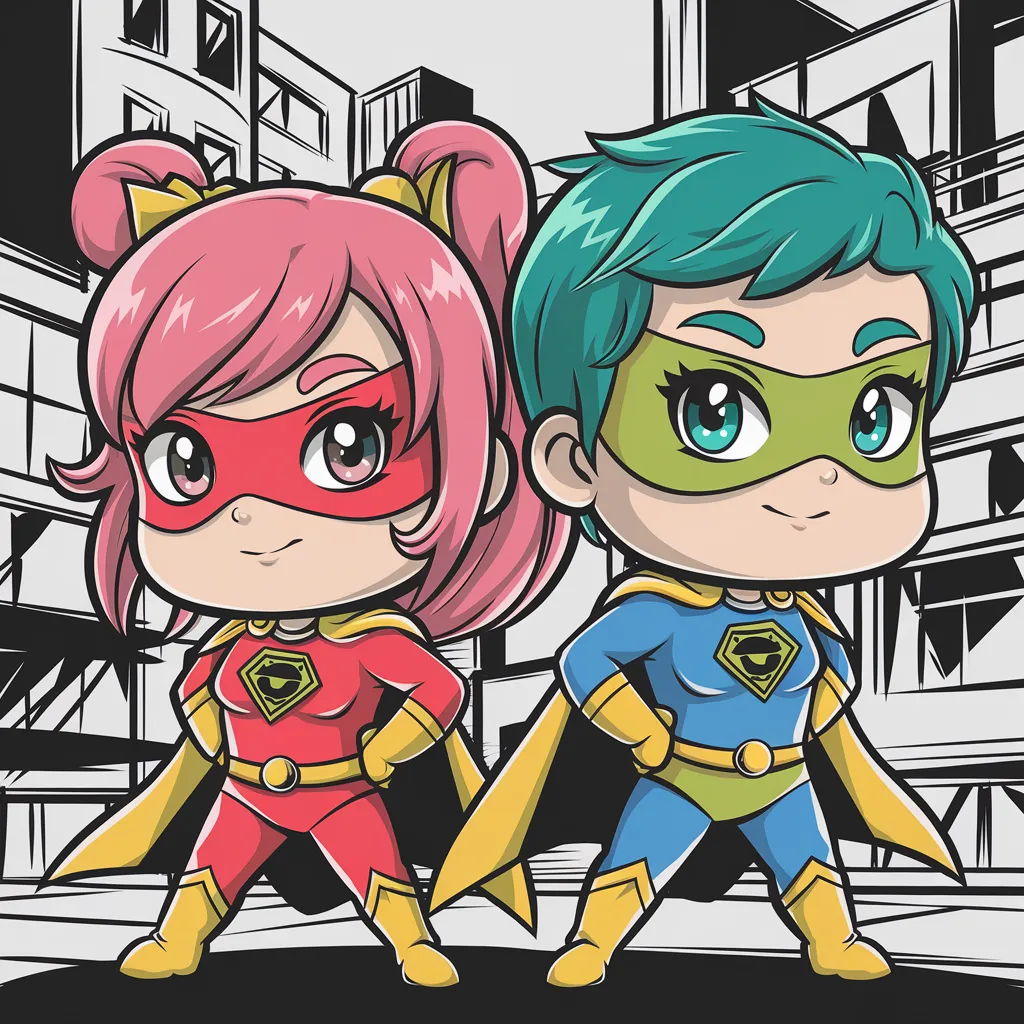 Karakter mengenakan kostum pahlawan super, siap untuk menyelamatkan dunia.
