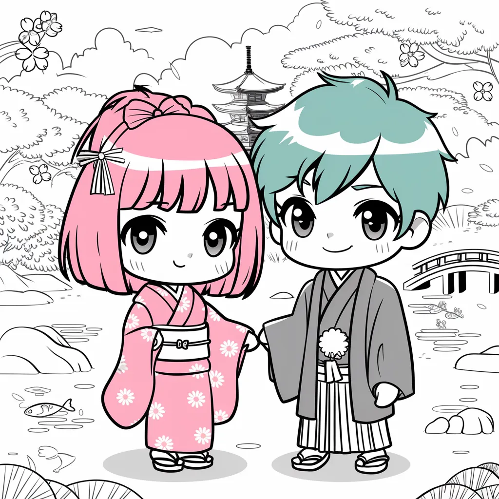 Seorang karakter mengenakan pakaian tradisional dari berbagai budaya, seperti kimono atau batik.