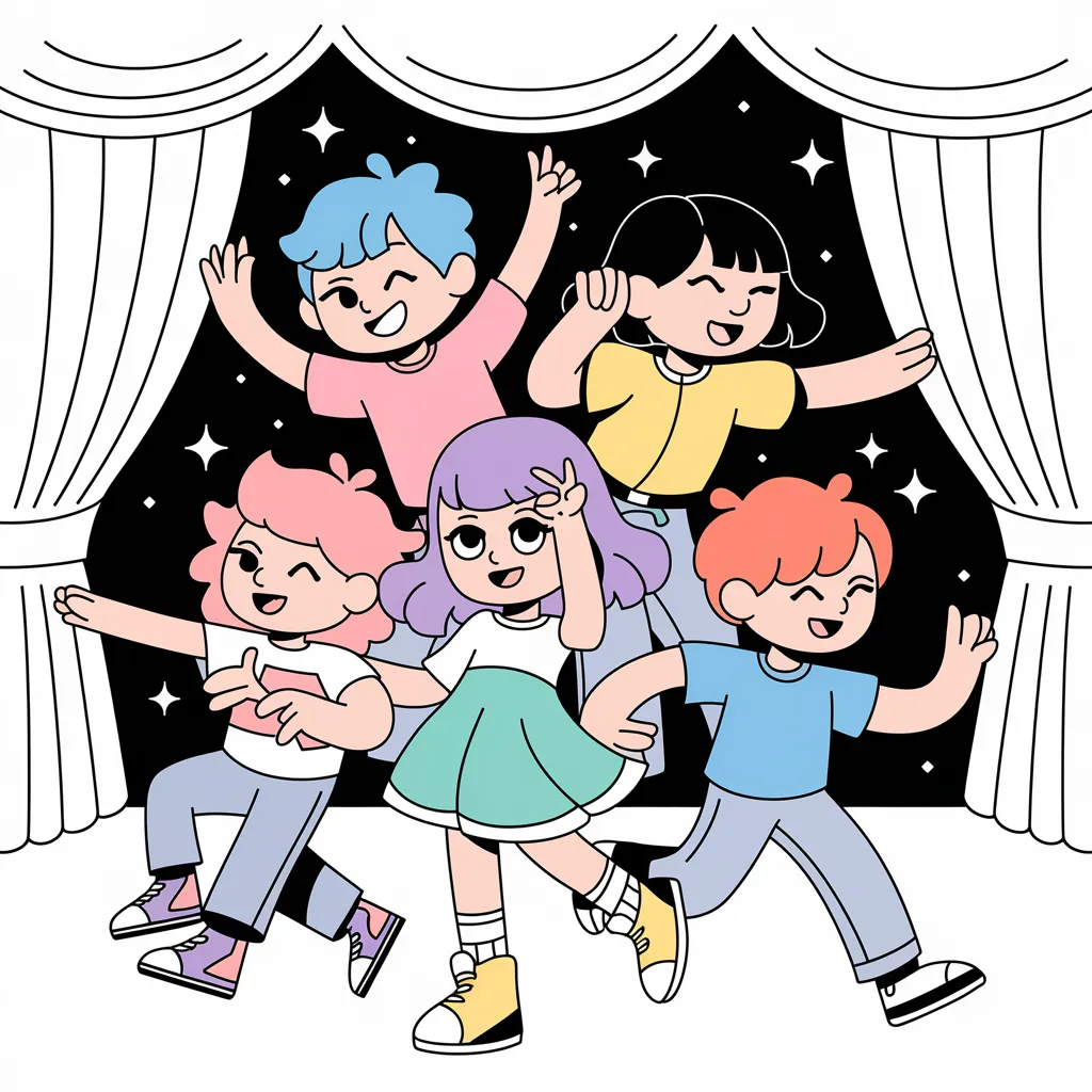 Sekelompok karakter bersama-sama, menunjukkan persahabatan.