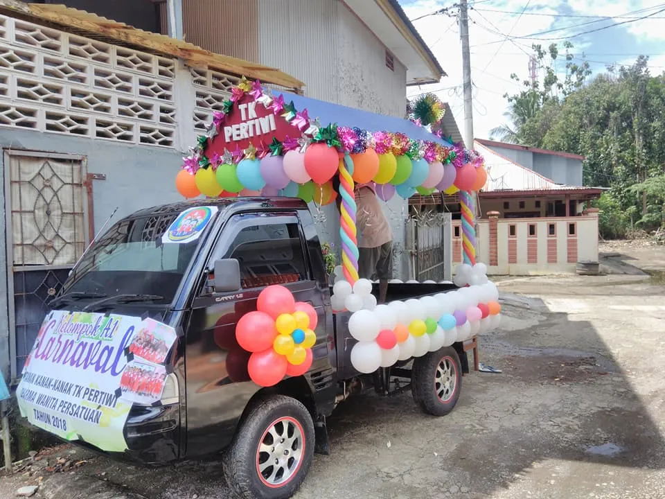 Indah dan cantik, dua kata yg melekat pada mobil hias karnaval taman kanak-kanak dengan tampilan beragam balon disekeliling, origami yg semakin membuatnya tampak begitu cantik. Tentu anak-anak murid TK akan semakin semangat bila menaiki mobil hias karnaval taman kanak-kanak seperti tampak pada gambar diatas.