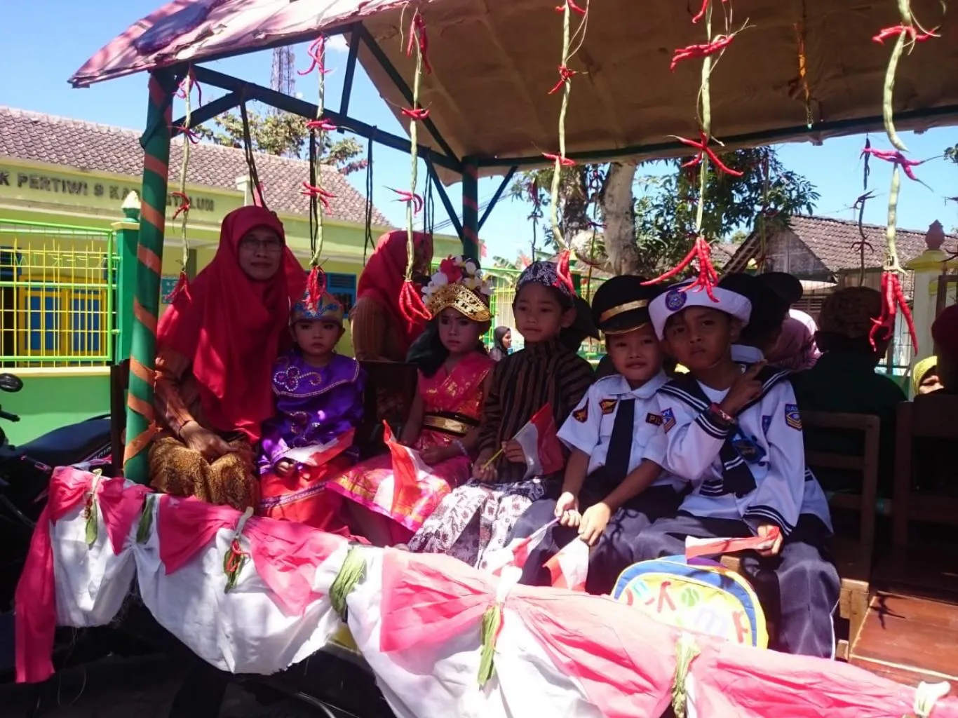 Jika kalian mencari konsep mobil hias karnaval taman kanak-kanak super unik dan menarik, maka yg cari terdapat pada gambar diatas. Bagaimana tidak unik, bila dekorasi yg dihadirkan berupa cabai merah yg digantung serta lainnya. Mungkin mobil hias karnaval taman kanak-kanak diatas akan terpilih menjadi pemenang bila dapat mengikuti lomba mobil hias karnaval taman kanak-kanak nantinya.
