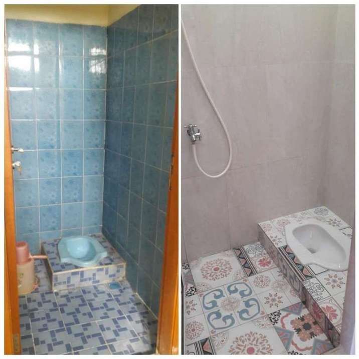 Kalian dapat menciptakan kamar mandi dengan wc jongkok yg bersih dan sederhana ini di rumah. Meski tak luas, kamar mandi ini terlihat istimewa berkat penggunaan kramik dengan corak yg sangat indah loh sob.