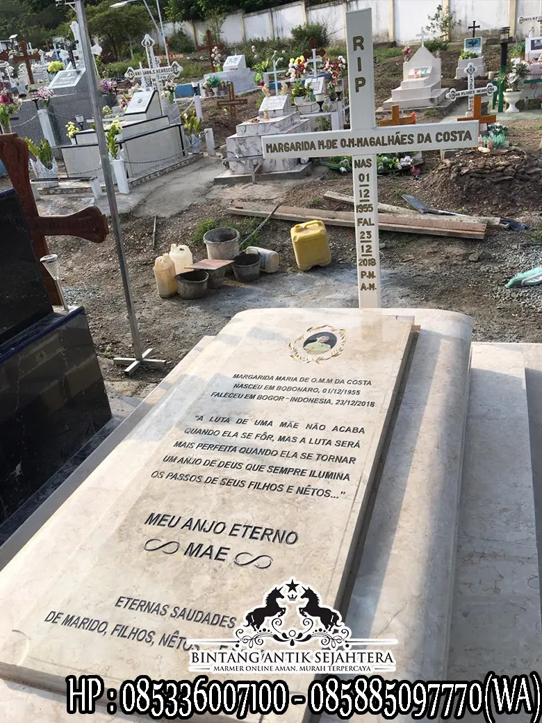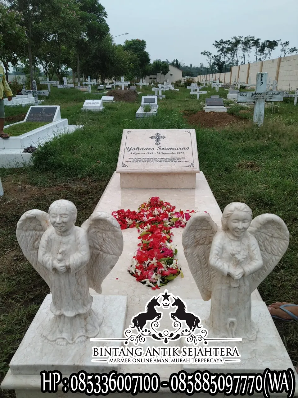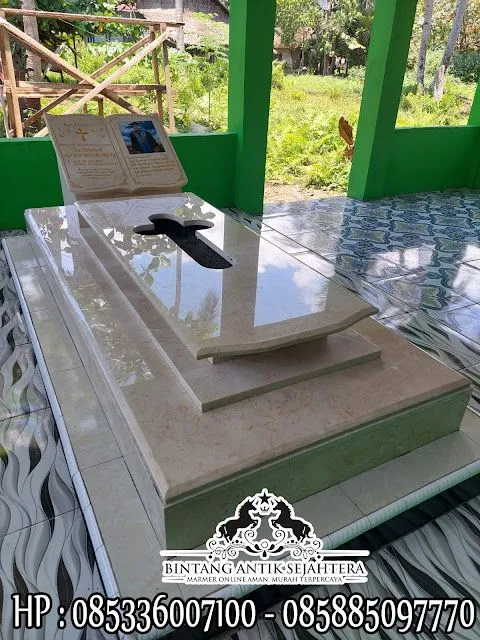 Adapun model kuburan kristen diatas hadir dengan warna hitam kilat dengan terbuat dari bahan dasar marmer lengkap dengan hiasan salib dan patung buku minimalis pada bagian atasnya sob.