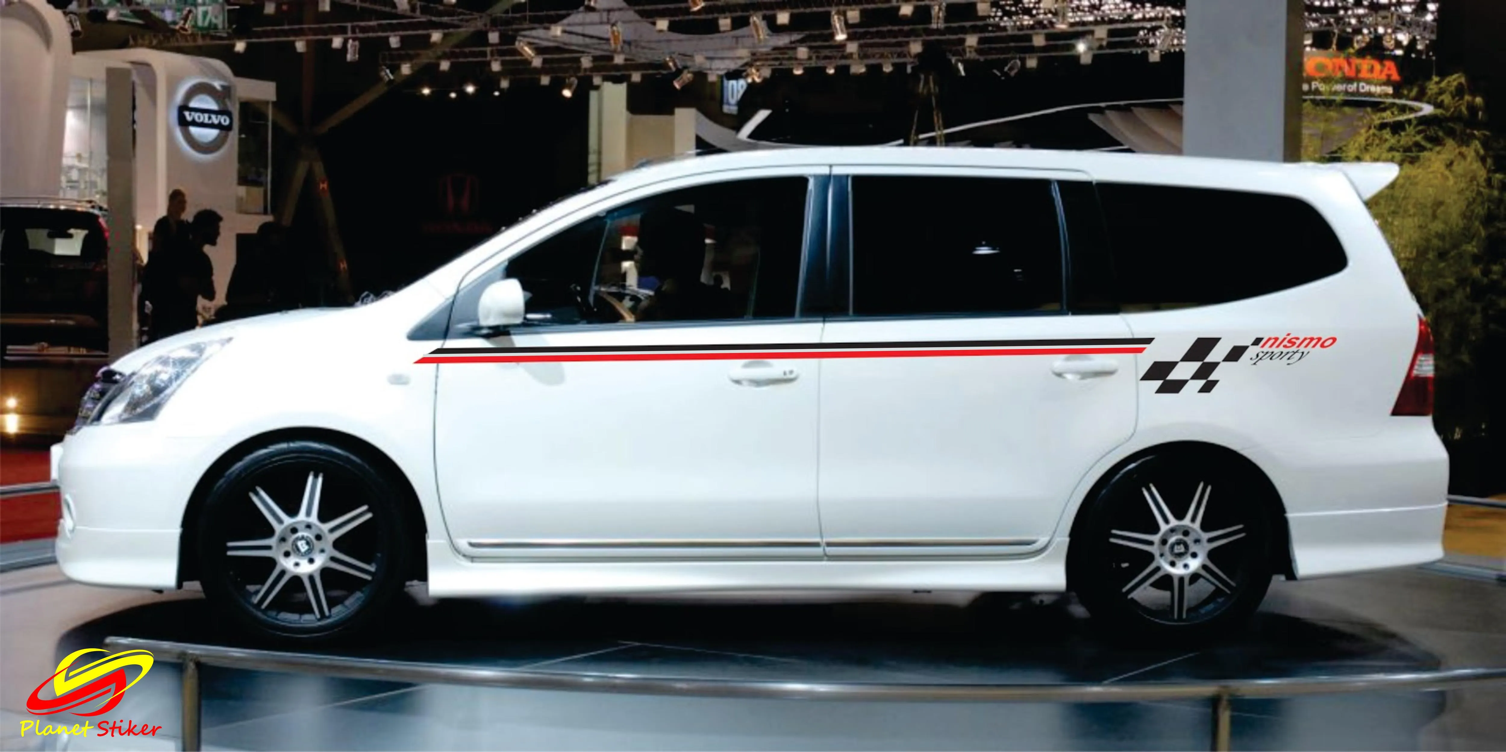 Terlihat pada modifikasi grand livina putih diatas modifikasi yg dilakuka hanya memberikan stiker warna hitam pada bagian samping bawah kanan dan kiri body mobil. Meski hanya memberi modifikasi berupa pemberian stiker sahaja akan tetapi sudah berhasil membuat tampilan mobil livina terlihat jauh lebih keren dari sebelumnya. Dan kalian tak perlu merogoh kocek yg terlalu dalam untuk dapat menghadirkan konsep modifikasi diatas pada mobil kalian ya sob.