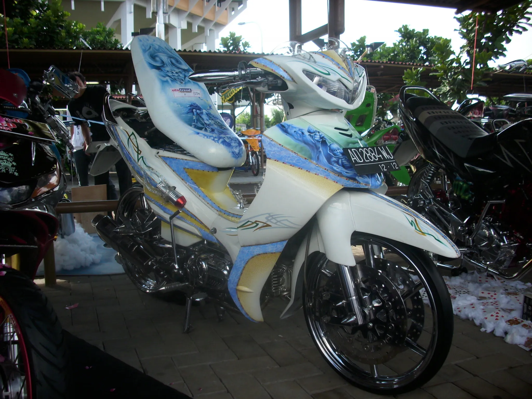 Adapun modifikasi jupiter Z standart diatas hadir dengan tampilan warna putih lengkap dengan decal motif yg unik dan keren. Seperti yg kalian lihat sob hampir keseluruhan part dan komponen motor jupiter Z standart diatas hadird dengan tampilan warna chrome yg membuat tampilan motor tersebut nampak sangat elegan dan mewah banget sob. Adapun konsep modifikasi motor juputer Z sangatlah unik dan keren sob.