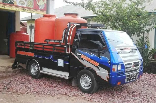 Punya budget yg minim namun ingin sekali memodifikasi Mitsubishi L300 yg kalian miliki, maka solusinya ialah dengan menggunakan konsep modifikasi L300 pada gambar diatas sob. Kalian hanya perlu menghadirkan decal motif simpel warna biru pada bagian depan mobil dan beberapa bagian lainnya. Meski terkesan simpel namun tetap sahaja tampilan L 300 yg kalian miliki akan terlihat tampan. Dan setidaknya tampilan mobil Mitsubishi L300 tak terlihat mencolok atau norak sob.