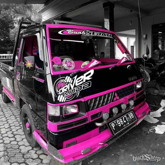 Terlihat tampan dan mencolok tampilan modifikasi L300 pada gambar diatas. Seperti yg kita lihat, Mitsubishi L300 diatas hadir dengan tampilan body warna hitam lengkap dengan decall motif garuda warna putih dan unggu pada semua bagian body. Mimin pribadi sih berpendapat bahwa modifikasi L300 diatas keren banget sob terlebih dengan dihadirkan velg roda warna silver membuat si tampan pada gambar diatas terlihat makin tampan aja sob. Adapun perkiraan biaya untuk menghadirkan konsep modifikasi diatas tidaklah terlalu mahal sob, karena kalian hanya perlu menghadirkan decal motif garuda warna putih dan ungu sahaja pada mobil Mitsubishi L300 yg kalian miliki agar terlihat sama persis dengan si tamvan pada gambar diatas.