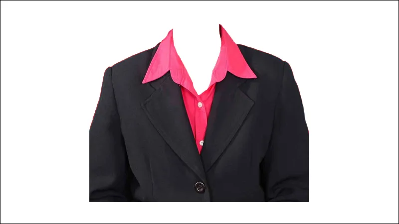Berikutnya mimin sajikan tampilan gambar pas photo jas wanita bewarna hitam yg dipasangkan pada kemeja bewarna pink ya sob.