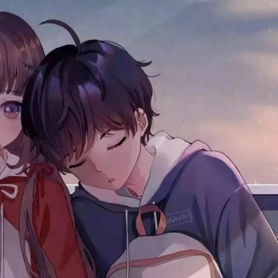 Pada gambar pertama ini terdapat gambar karakter anime pria mengenakan jaket hodiee membawa tas tertidur pulas disamping bahu seorang gadis. Adapun karakter anime pria apada gambar diatas terlihat kind and soft. Bisa banget tentunya gambar diatas dijadikan walpaper HP ataupun foto profil sosial media sob.