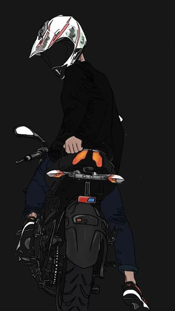 Berikutnya hadir tampilan foto kartun seorang lelalki sedang berfose menghadap kebelakang dudk diatas keretanya yg terlihat keren dan tamvan.