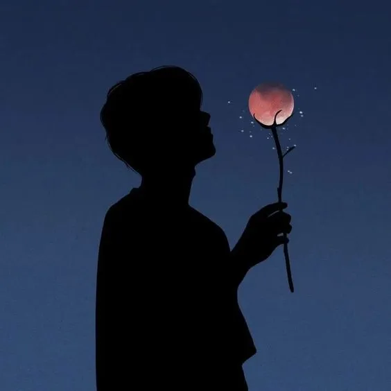 Adapun berikutnya ini iaalh foto siluet seorang lelaki lengkap dengan hiasan objek bulan yg seolah -olah terlihat seperti dirinya memegang setangkai bunga.