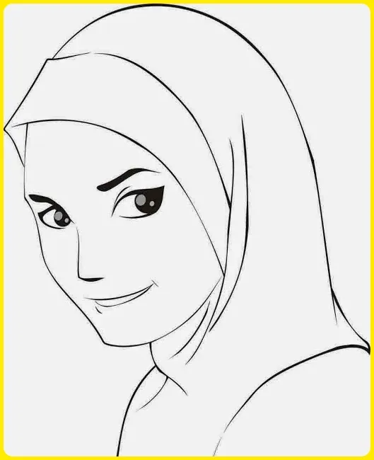 12. Sketsa Gambar Orang Berhijab Yang Mudah Kedua Belas