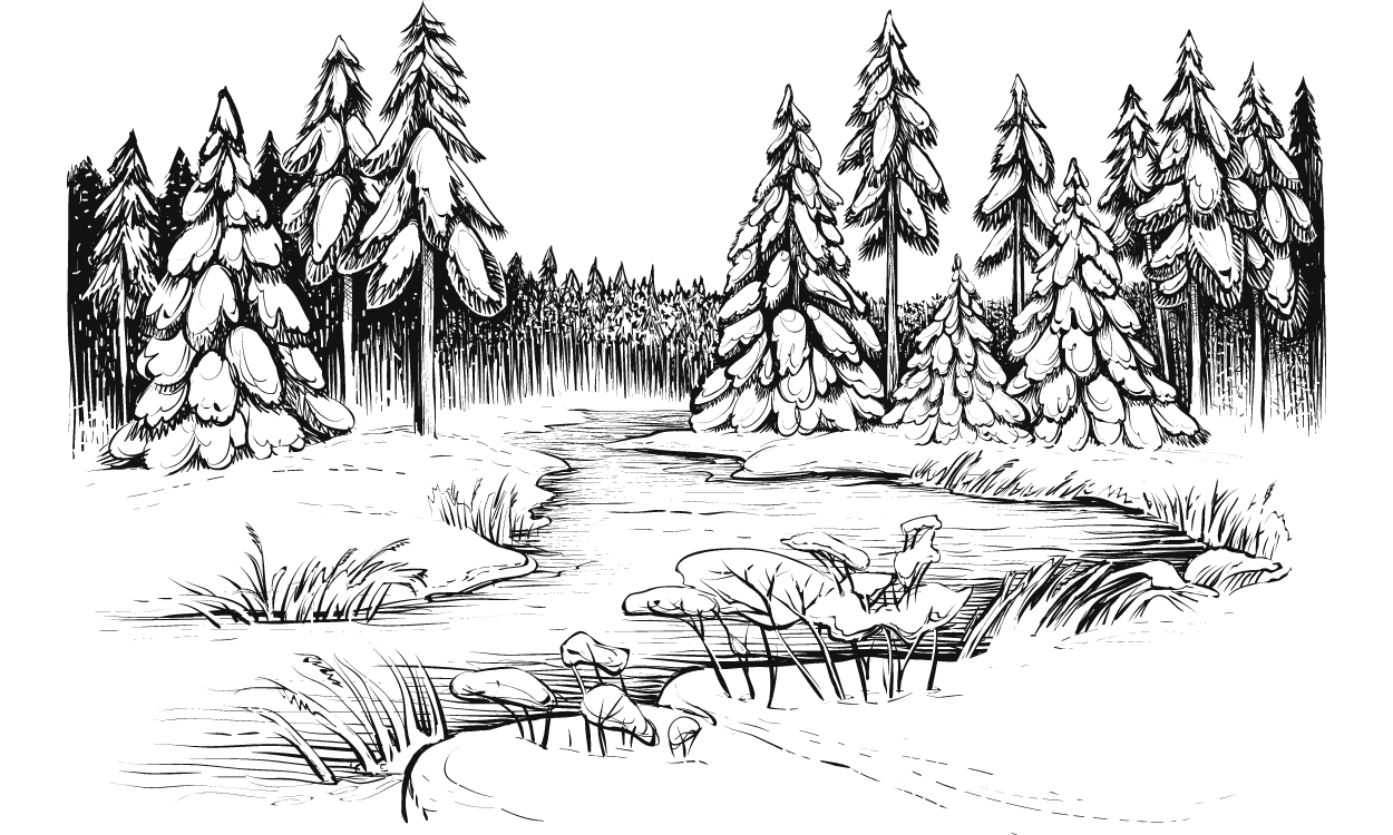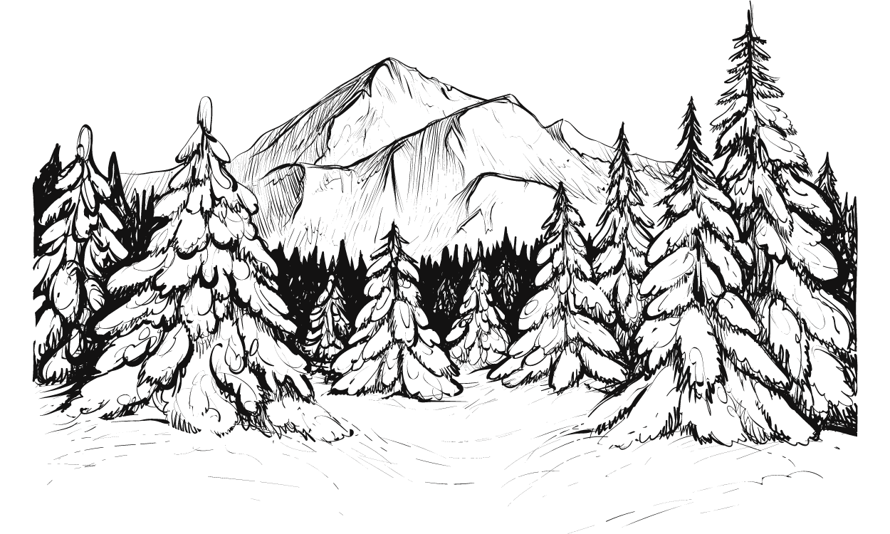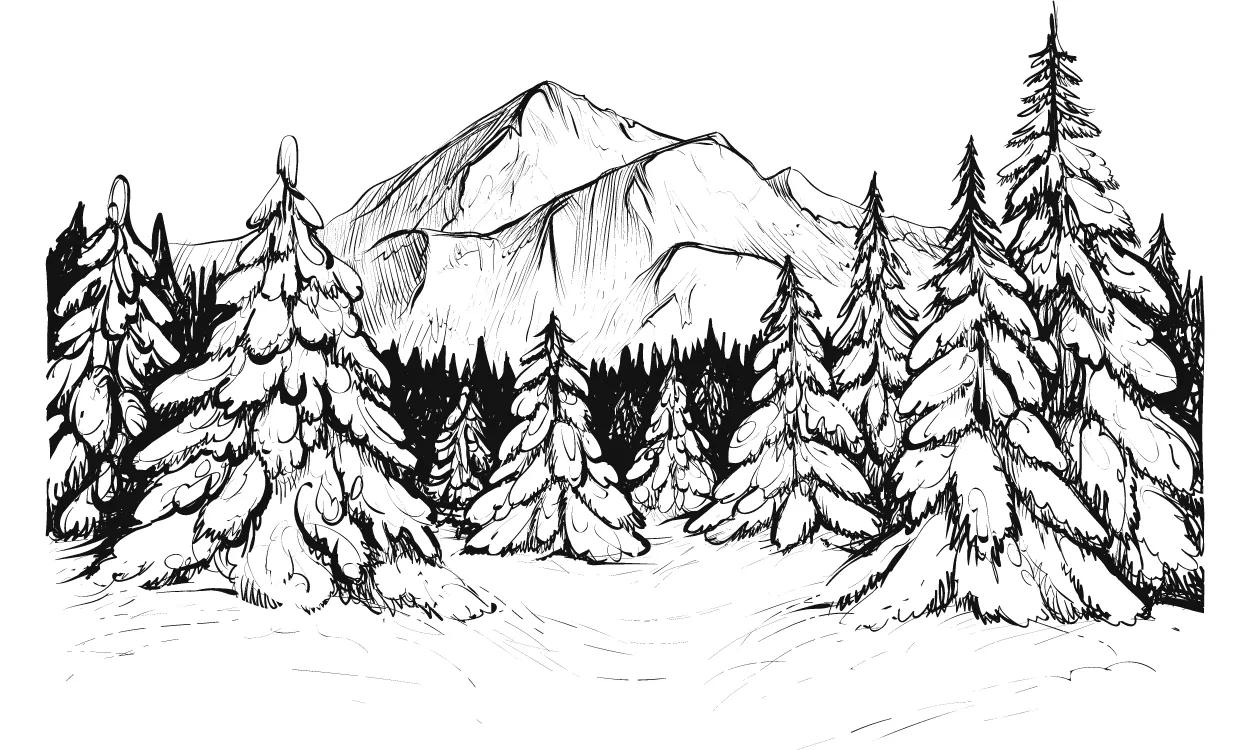 Tampak pada gambar diatas tampilan lukisan sketsa pemandanga hutan pinus yang tertutupi salju dengan latar belakang pegunungan. Lukisan sketsa pemandangan hutan pinus yang tertutupi salju dengan latar belakang pegunungan dapat memberikan kesan keindahan dan ketenangan. Hutan pinus memberikan kesan kealamian yang indah dan menenangkan, ditambah lagi dengan keadaan tertutupi salju memberikan kesan kehangatan.