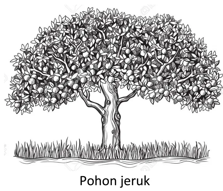 Berikutnya ini mimin sajikan kepada kalian berupa sketsa pehon jeruk ,yg rimbun akan buah-buahnya,dedaunannya,dengan sektsa dahan dan batang yg tidak terlalu banyak ,hal menarik pada gambar sketsa pohon jeruk satu ini ialah berupa pada bagian bawah pohonnya tersajikan pula gamabar sketsa rerumputan  menjadi gambar pendukung sehingga menjadikan gambar sketsa pohon jeruk yg terdapat diatas terlihat nyata ,terlebih lagi ditambah dengan pewarnaan yg rapi dan sesuai maka ,akan terlihat seperti nyata  nanti hasil gambarnya.