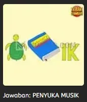 Mimin pikir tebak gambar level 49 yg terdapat diatas sangat mudah sekali untuk dapat ditebak ya sob. Adapun beberapa objek gambar yg terdapat pada tebak gambar diatas ialah seperti, penyu, buku kamus, dan huruf (IK). Dan jawaban dari tebak gambar yg terdapat diatas ialah “PENYUKA MUSIK”.