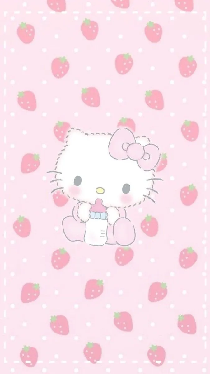 Kesan dari tampilan gambar bayi Hello Kitty Pink yang cantik dan menggemaskan sedang memegang botol susu dengan latar belakang warna pink serta hiasan gambar stroberi dan bintik-bintik putih sebagai wallpaper adalah imut dan menyenangkan. Gambar ini memberikan kesan kebahagiaan dan kenyamanan, karena melihat bayi Hello Kitty Pink yang manis dan bahagia. Selain itu, latar belakang warna pink dan hiasan stroberi dan bintik-bintik putih memberikan nuansa yang ceria dan menyenangkan, membuat gambar ini cocok untuk dijadikan wallpaper hp bagi mereka yang suka dengan karakter Hello Kitty.