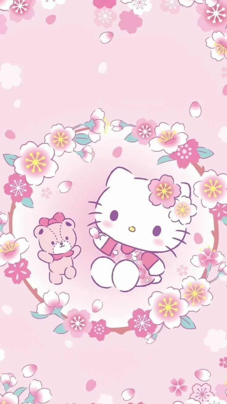 Tampilan gambar Hello Kitty Pink bersama dengan boneka beruang kesayangannya serta hiasan lain seperti karangan bunga yang indah membentuk lingkaran latar belakang warna pink memberikan kesan yang sangat lucu, manis, dan imut. Kombinasi warna pink yang lembut dan segar, serta hiasan bunga yang cantik membuat tampilan gambar ini cocok digunakan sebagai wallpaper hp bagi penggemar karakter Hello Kitty yang ingin menampilkan kesan feminin dan lucu pada layar ponselnya. Selain itu, kehadiran boneka beruang kesayangan Hello Kitty juga menambah kesan menggemaskan dan membuat tampilan gambar semakin menghibur.