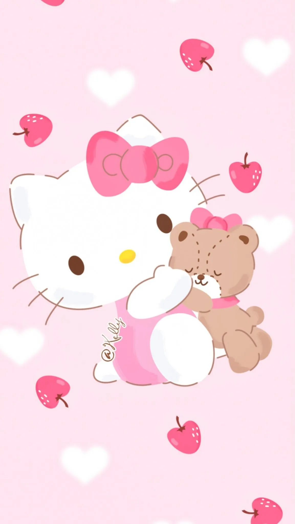 Tampilan gambar Hello Kitty Pink yang mengenakan dres dan pita warna pink bersama dengan boneka beruang kesayangannya sebagai wallpaper hp terlihat sangat lucu dan menggemaskan. Warna pink yang dominan pada gambar tersebut memberikan kesan feminin dan manis yang cocok untuk dipasang sebagai wallpaper pada perangkat telepon pintar. Kehadiran boneka beruang kesayangan Hello Kitty Pink juga menambah nilai estetika gambar dan memberikan kesan kehangatan dan kenyamanan. Secara keseluruhan, gambar tersebut dapat meningkatkan mood dan semangat penggunanya dalam melakukan aktivitas sehari-hari.